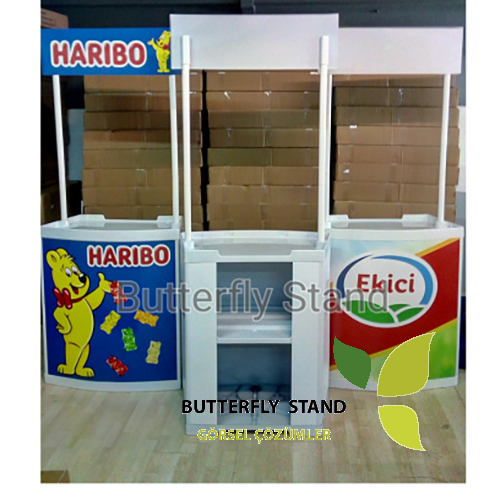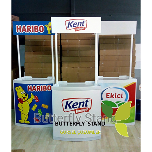 İster iç mekanda ister dış mekanda kullanabileceğiniz her biri demonte edilebilir nitelikteki masaları; tanıtım standı, karşılama masası, danışma veya ürün sergileme gibi çok çeşitli amaçlarda kullanabilirsiniz. Ayrıca, arkası raflı olan bu masalar doküman ve promosyon malzemesi gibi malzemelerinizi depolama imkanı da sunar.